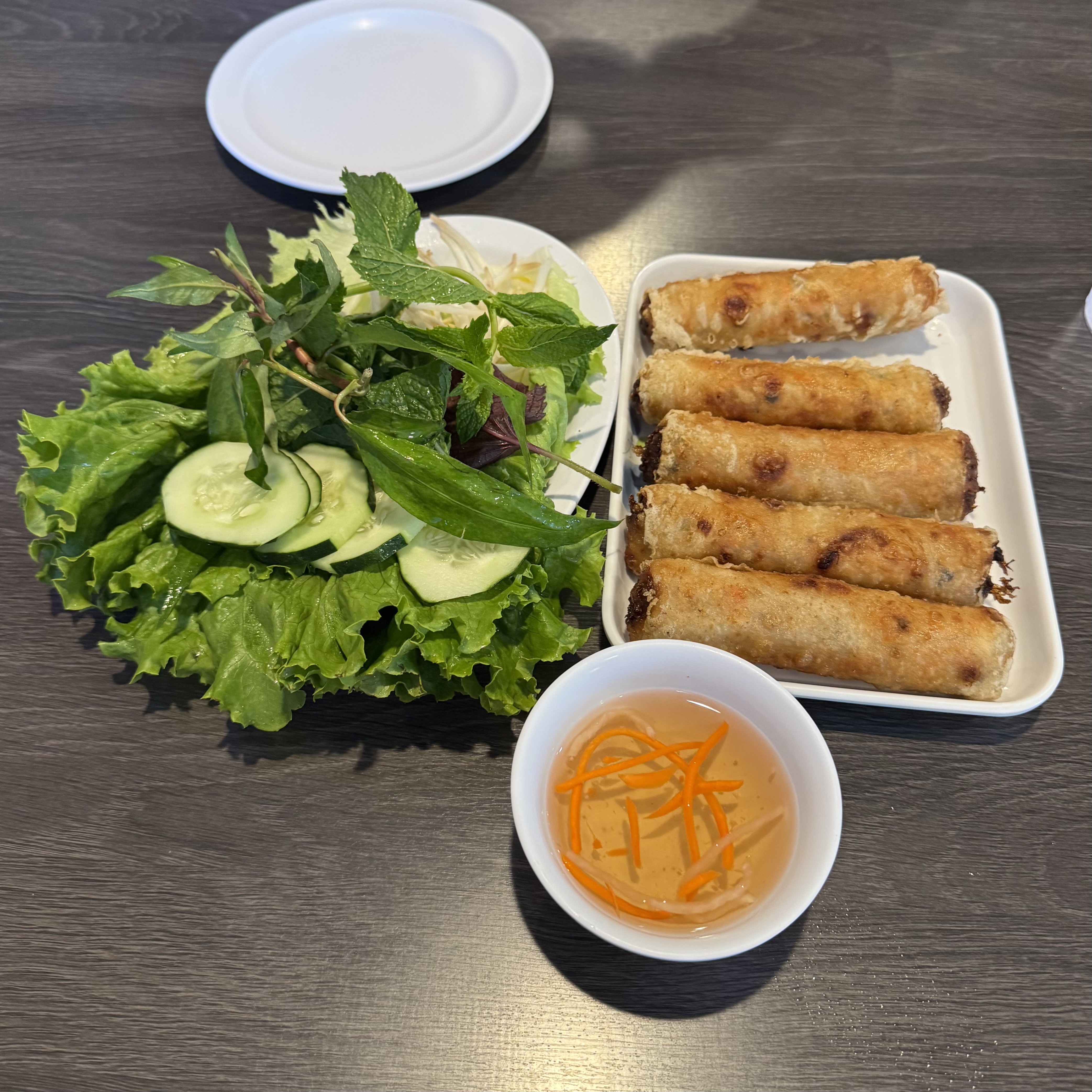Thanking my sister for bringing these life-changing egg rolls into my life. Unlike many other egg rolls I’ve had, these egg rolls are wrapped in rice paper, which brings about the characteristic puffy and bubbly skin that arises from frying rice paper. It’s significantly better than egg roll wrappers, in my opinion! Their pork filling is also generously seasoned, which makes the filling a more prominent player in this egg roll than maybe others I’ve had. At $15.50, they aren’t cheap, but they are much bigger than your average chả giò, and this would be a nutritious (with the plentiful greens) and hearty meal for one person.