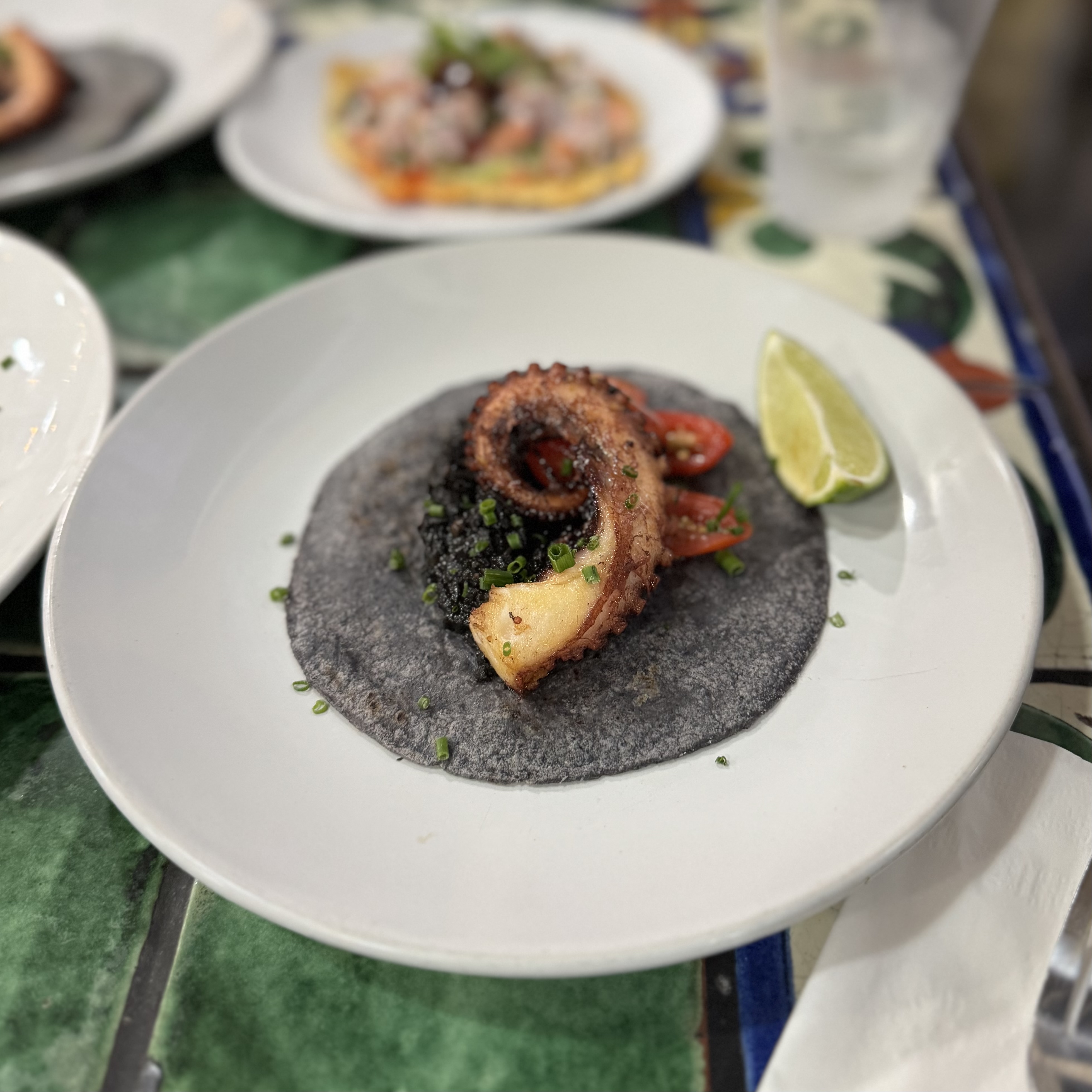🍚 Dish Description: Braised and fried gulf of Mexico octopus, calamari ink sofrito