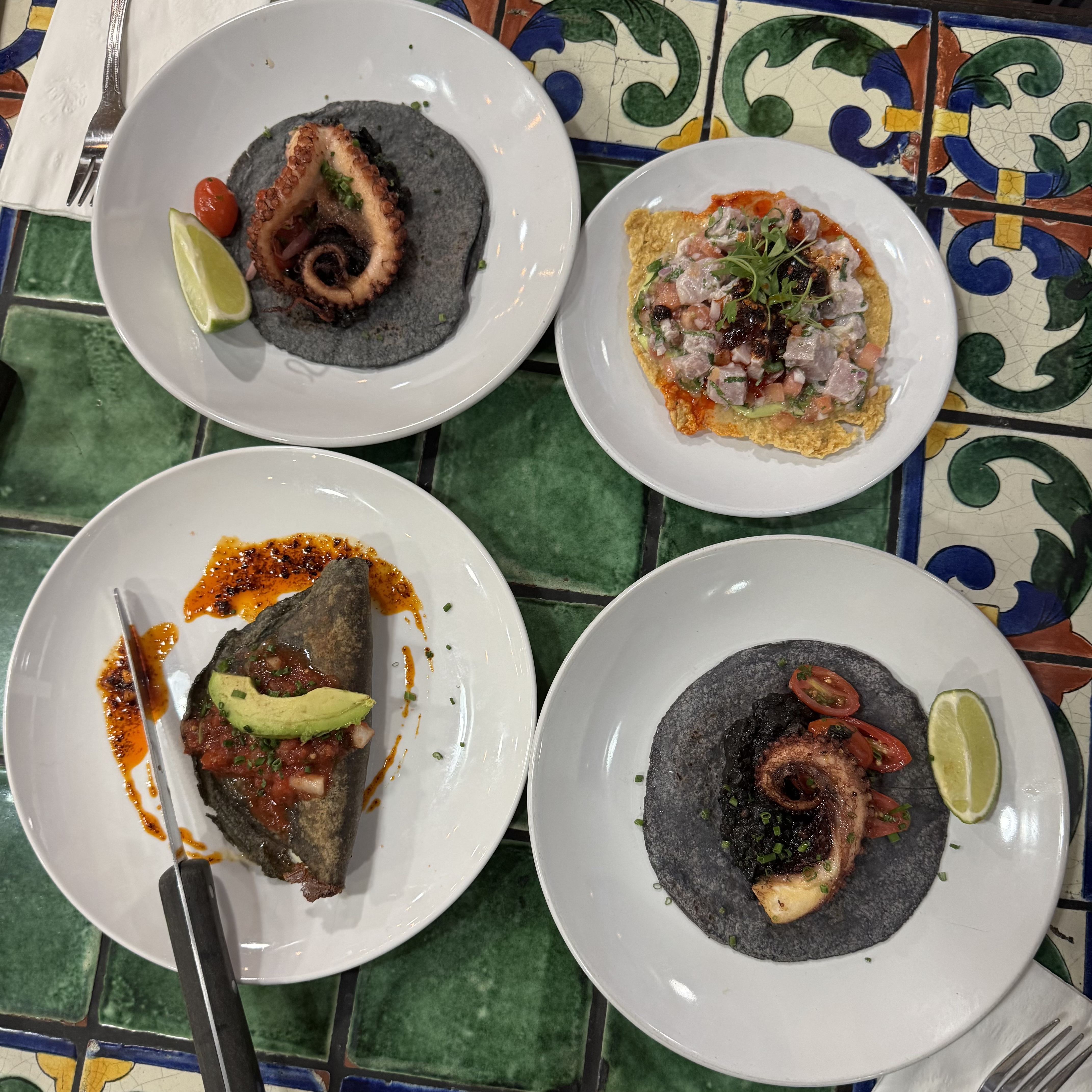 Holbox is just about an LA legend – there’s nothing quite like the ultra fresh seafood tacos, ceviches, aguachiles, cocteles, tostadas, and entrees that they make. The restaurant is named from the island off Mexico’s northern Yucatán Peninsula, pronounced “hole-bosh.” This is one of the restaurants on this list that I’ve visited the most, and for that, I am so grateful. I’ve gotten kanpachi tacos and tostadas, as well as their shrimp entree, but the one dish I almost always get is their octopus taco. I love a grilled octopus, and it just works so well with the citrus, scallions, and squid ink sofrito it’s paired with.
