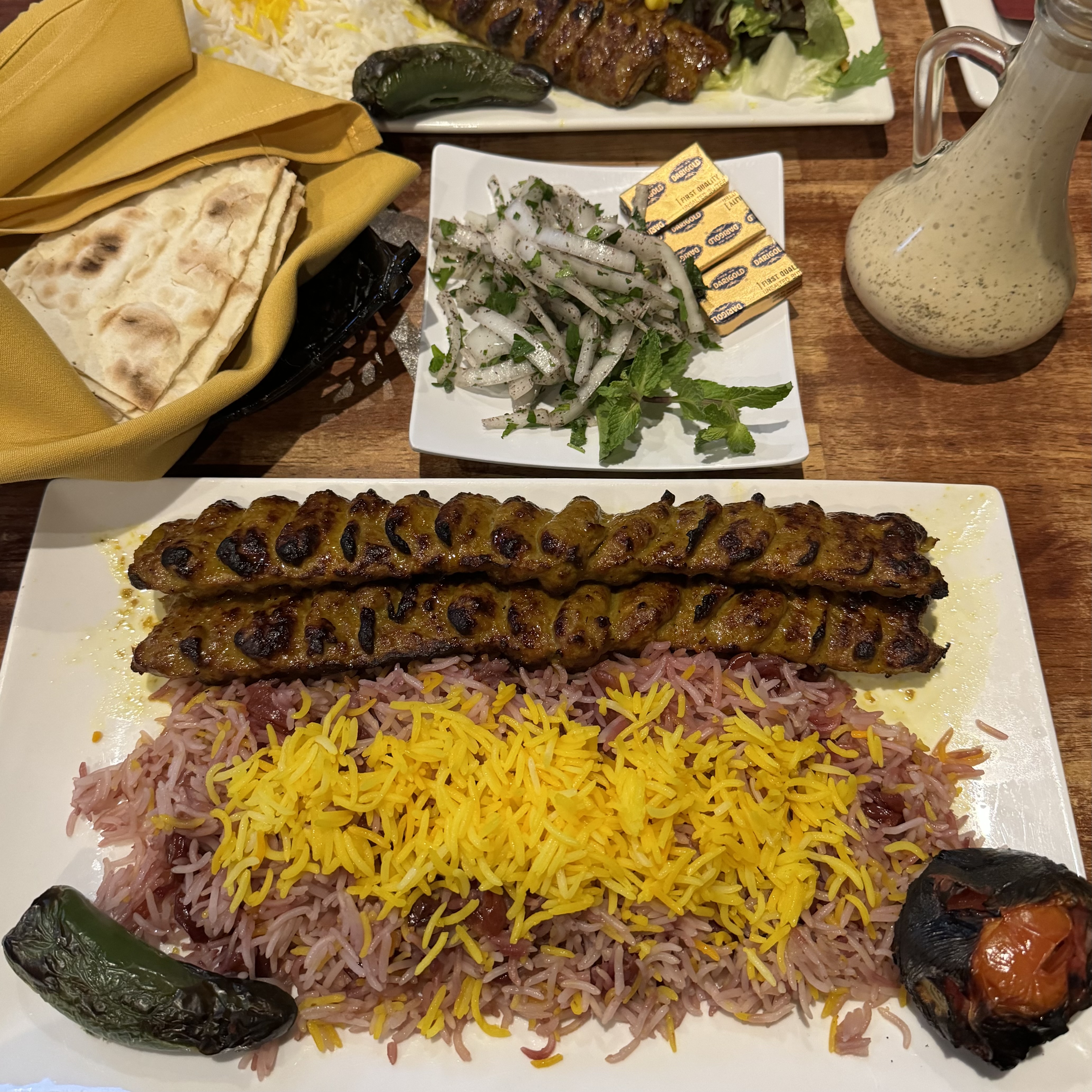 🍚 Dish Description: Two juicy skewers of perfectly seasoned ground beef and lamb