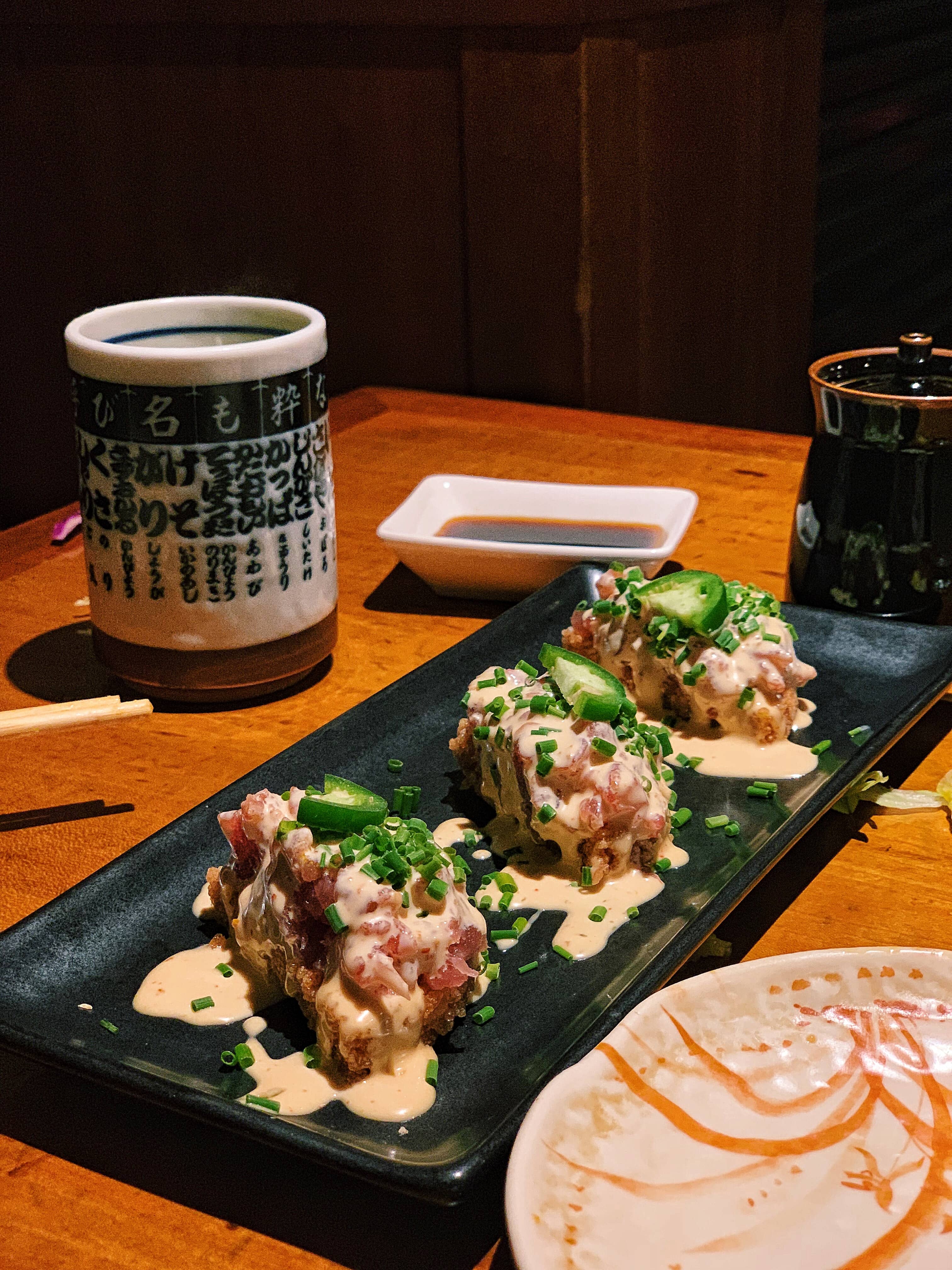 Another dish weāve tried is the spicy tuna crispy rice. One of the most popular dishes in American-Japanese restaurants, Yama makes it look incredibly fancy. This dish is just a fried sushi rice āplatformā topped with spicy tuna and more mayo/chives. Itās pretty simple, but itās a dish that combines crunch with some light spice. I think itās a great introduction for those whoāve never had raw fish!