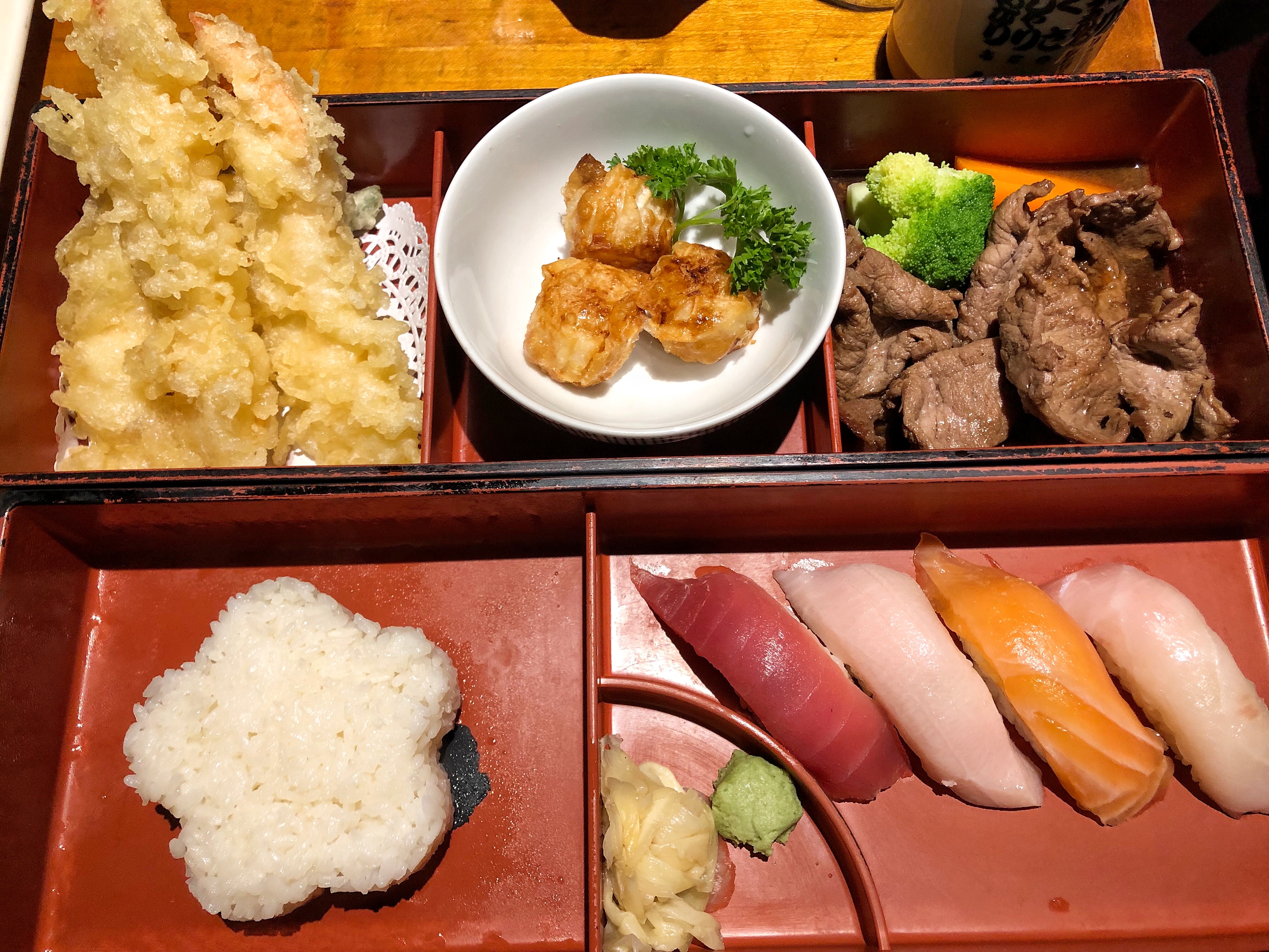 The dinner boxes work a little differently, as you donāt get as much control on what comes with the box, besides your choice of beef or chicken teriyaki and sushi or sashimi. The box comes with shrimp and vegetable tempura, fried shrimp shumai, rice, and ginger dressed salad. Itās perfect for people who want to sample multiple things, which is great for people who are a little indecisive when it comes to food (me, again).